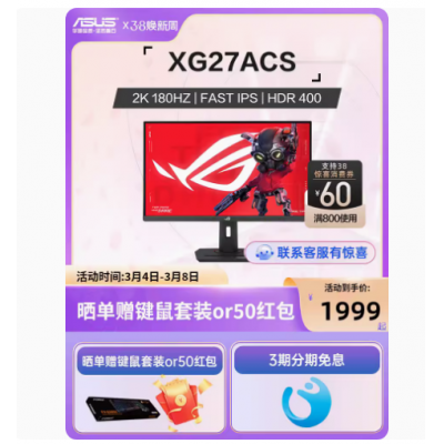 首页 > 数码 > 显示器 > ROG XG27ACS绝杀27青春版 显示器电竞180Hz 27英寸2k显示屏幕电脑